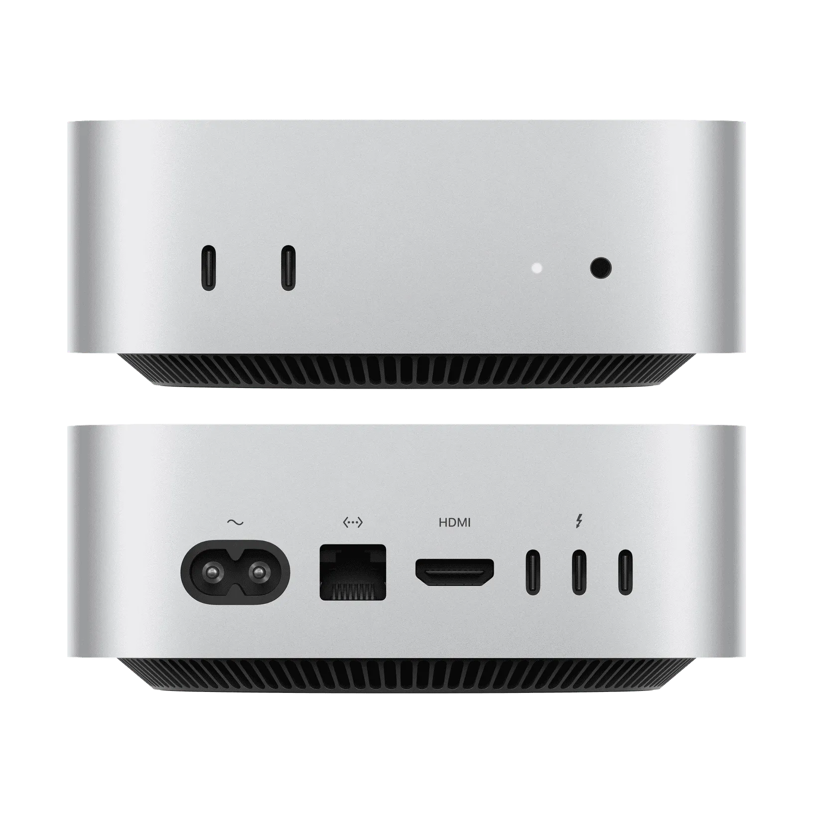 The Mac Mini M4 features a compact 5-by-5-inch design powered by either a 10-core M4 or up to a 14-core M4 Pro chip, starting with 16GB of unified memory (configurable to 64GB) and 256GB of SSD storage (configurable to 8TB), while offering front-facing USB-C ports and up to three Thunderbolt 5 ports on the Pro model.